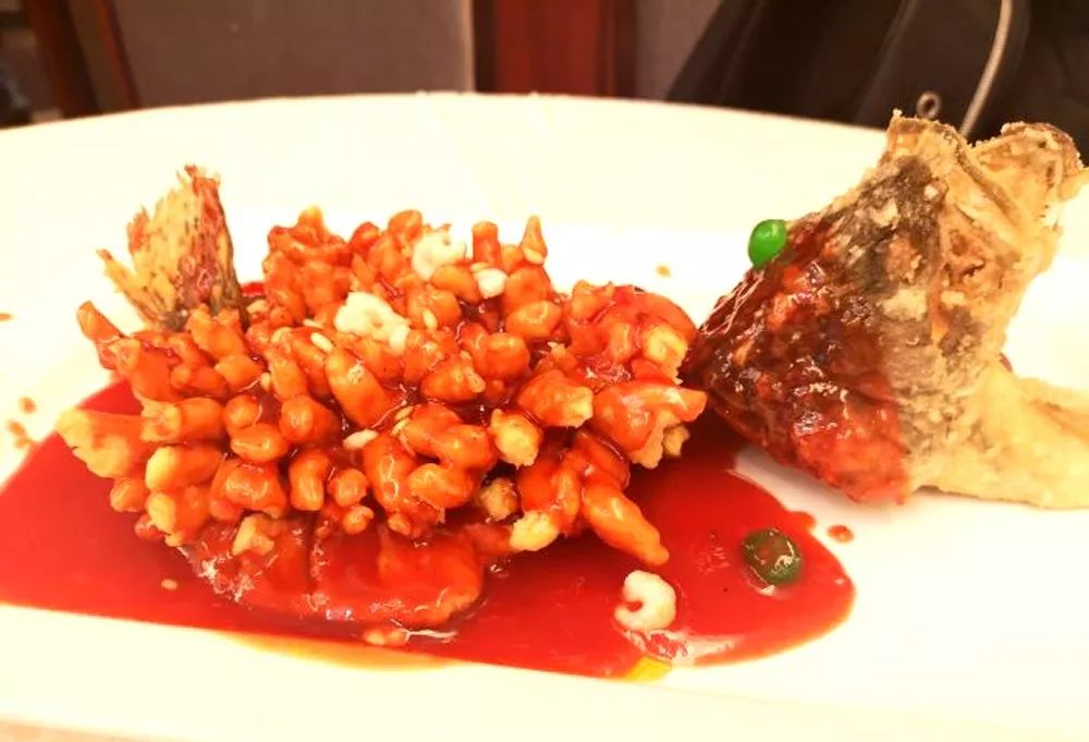 松鼠桂魚,又名松鼠鱖魚,是蘇幫菜中的傳統名菜。這道菜成菜后,形如松鼠、外脆里嫩、色澤橘黃,酸甜適口,并有松紅香味。