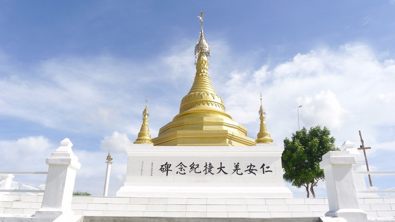 仁安羌大捷紀念碑 位于緬甸馬圭省仁安羌市伊洛瓦底江畔