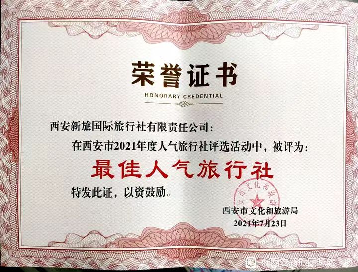 西安新旅國際旅行社地處西安市中心鐘樓商圈;是經工商局和文旅局雙重審批的一家綜合性旅游企業!