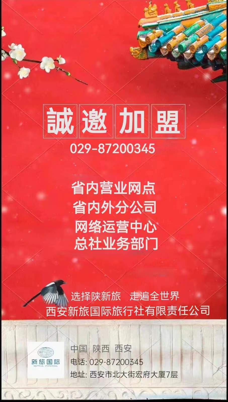 歡迎各地的有識之士能加盟到我們團隊中來,資源共享、共謀發展!為旅行創造精彩,讓游客感動生活;選擇陜新旅,走遍全世界!