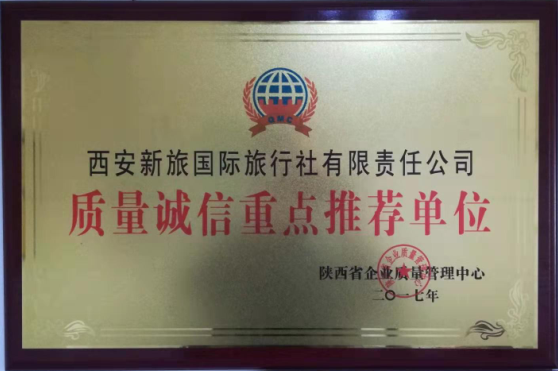 4、口碑良好,信譽保證。西安新旅國際旅行社是中國旅行社協(xié)會會員單位,陜西省《質(zhì)量誠信重點推薦單位》和《陜西省AAA級信譽單位》,西安市旅游局推薦的《旅行社責(zé)任保險全國統(tǒng)保示范項目參保單位》。在國內(nèi)外游客中和旅游業(yè)中有良好的認(rèn)同感和好評,在國際上建立了良好的口碑和信譽!