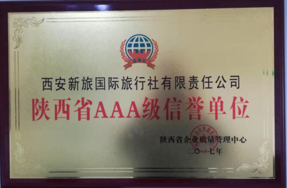 4、口碑良好,信譽保證。西安新旅國際旅行社是中國旅行社協會會員單位,陜西省《質量誠信重點推薦單位》和《陜西省AAA級信譽單位》,西安市旅游局推薦的《旅行社責任保險全國統保示范項目參保單位》。在國內外游客中和旅游業中有良好的認同感和好評,在國際上建立了良好的口碑和信譽!