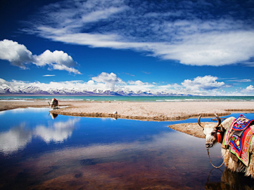 早餐后乘車延青藏線西行轉北赴西藏三大圣湖之一的【納木措】(游覽時間1小時)——海拔4718米,它是世界上海拔最高的咸水湖,它位于唐古拉山脈西南腳下,有如鑲嵌在藏北草原上一顆無暇的翡翠。湖的盡頭是白雪皚皚連錦的雪山,和藍天下茵茵草地,朵朵羊群以及帳篷里飄出的裊裊欽煙,象是到了遠離城市喧器的仙境。之后返回拉薩。