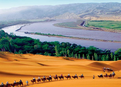 D1 早飛機前往-中衛,接機后入住酒店,后游覽3A通湖草原(游覽1小時20分鐘)旅游區,其景區匯集了沙漠、鹽湖、濕地、草原、沙泉、綠洲、牧村等多種自然人文景觀,被中外游客喻為沙漠中的“伊甸園”。后游覽“世界壟斷性旅游”資源的5A沙坡頭及騰格里大沙漠風景區(游覽3小時30分),位于中國四大沙漠之一的騰格里沙漠東南邊緣,黃河從旁穿過,風景秀美。古老的黃河野馬般奔騰著穿山越谷,經黑山峽一個急轉彎流入寧夏中衛境內。這一個急轉彎,使黃河一改往日的洶涌,像一位文靜秀美的少女,平靜緩流;這一個急轉彎,造就了一個神奇的自然景觀——沙坡頭。黃河、大漠、沙山,勝景如畫,融自然景觀、人文景觀于一體,被世人稱之為“世界沙都”。可自行參加沙漠游樂項目:滑沙,飛越黃河滑索、黃河羊皮筏子、還有巨大的沙雕群、沙漠駱駝、沙漠越野車、卡丁車等游樂項目,之后集合乘車約3小時后抵銀川。晚銀川自由活動自費品嘗銀川小吃。